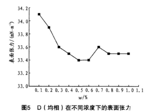 D(均相)在不同濃度下的表面張力見圖5。