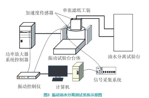試驗的主要設(shè)備有電振動試驗臺、按照ISO 16332標(biāo)準(zhǔn)搭建的柴油–水分離試驗臺、加速度傳感器及信號采集系統(tǒng)、電子天平、庫倫法微量水測定儀、界面張力儀、黏度計等。